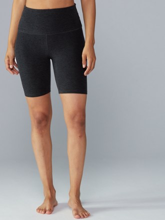 Practice your asanas or hit the gym in the women s beyond yoga spacedye high waisted biker shorts.
